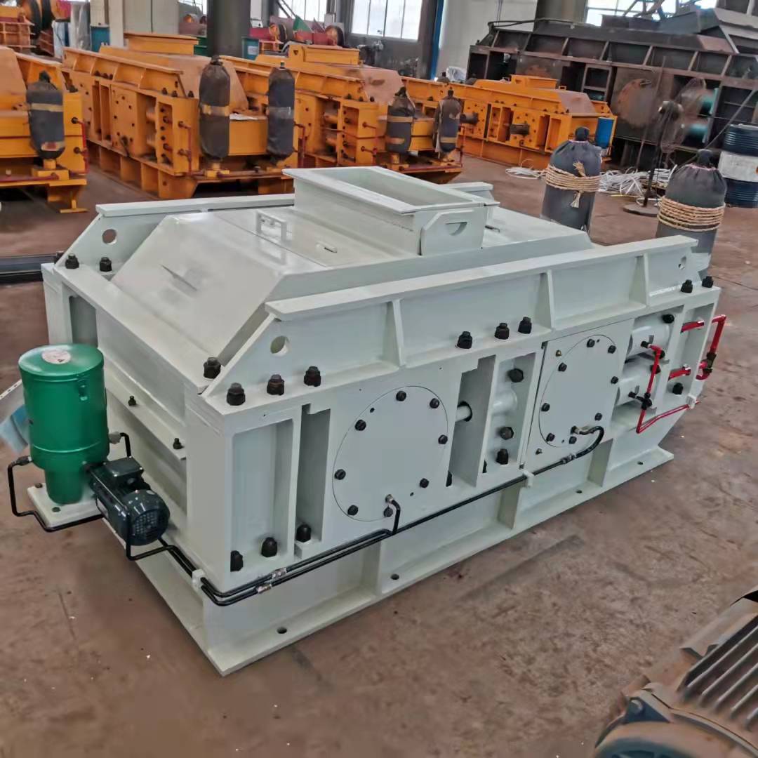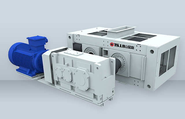 該機(jī)工作原理與輥壓機(jī)相近,采用了料層擠壓破碎的理念,其主體是由一對相互平行、水平安裝的圓柱形輥?zhàn)咏M成,分別由兩套彼此獨(dú)立的動力裝置驅(qū)動。當(dāng)這對輥?zhàn)幼鱿嘞蜻\(yùn)轉(zhuǎn)時,進(jìn)入喂料口的物料受到輥?zhàn)拥臄D壓、沖擊、磨削而細(xì)碎,并隨自身重力被旋轉(zhuǎn)的輥?zhàn)铀Τ觯蛳滦堵洹?/p>